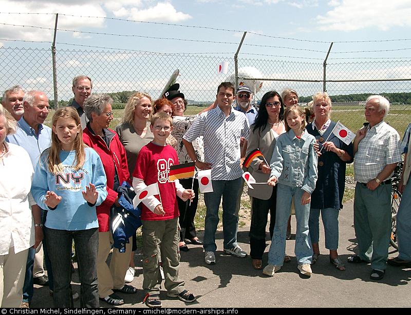 Ca. 50 begeisterte Zeppelinfans verabschiedeten "ihren" Zeppelin und wünschten ihm und seiner Crew eine gute Fahrt. Die erste Etappe führte das Luftschiff zunächst nach Halle/Oppin. Von dort geht es dann weiter nach Berlin und Hannover und schliesslich weiter über Skandinavien und dann quer durch Russland bis nach Japan.